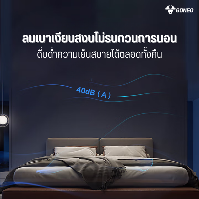 ลมพัดเบาๆ ช่วยให้คุณนอนหลับสบาย เย็นสบายตลอดคืน ไร้เสียงรบกวน ด้วยระดับเสียงเพียง 40 เดซิเบล(เอ)